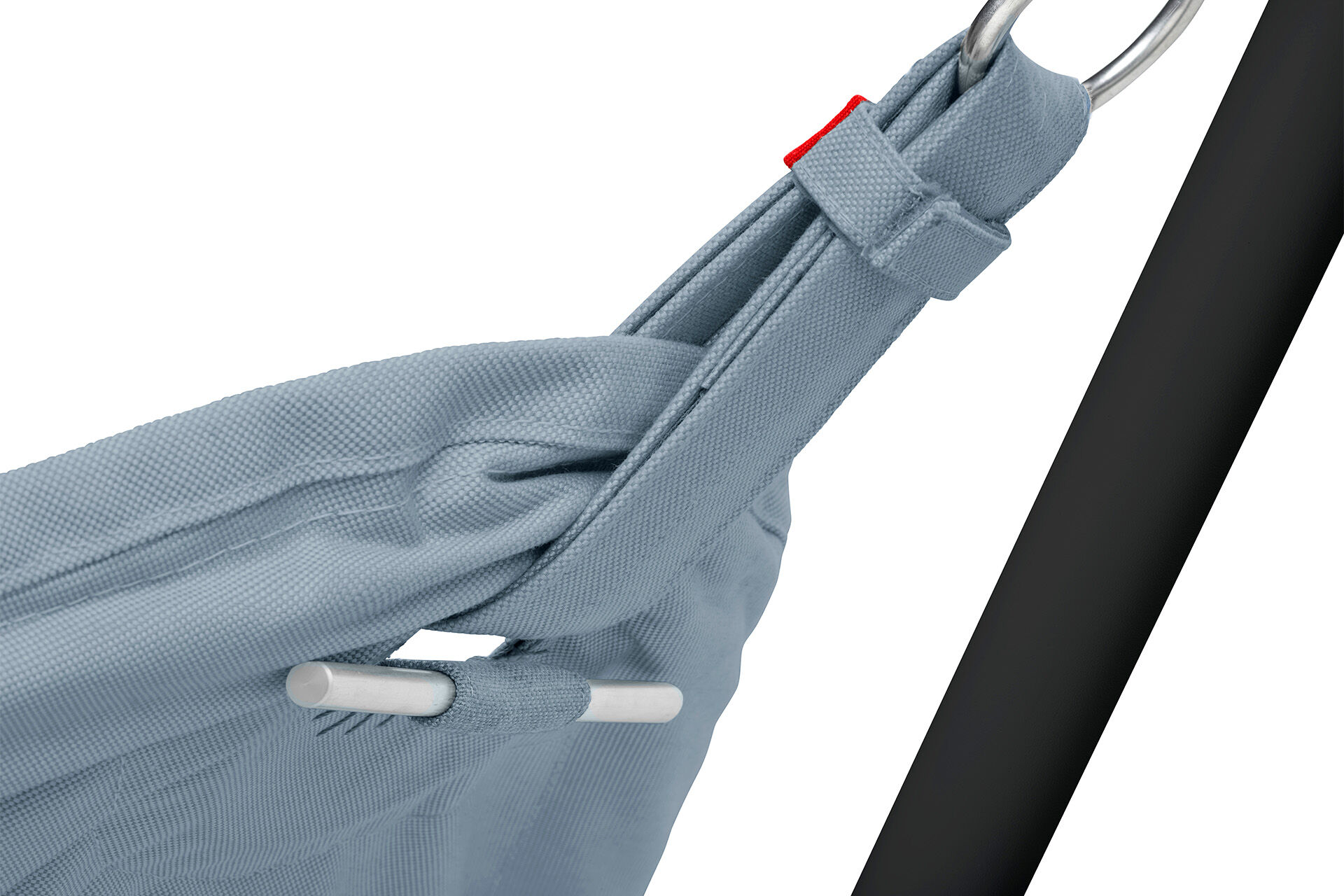 De hangmat wordt geleverd met een stevige standaard, waardoor je geen bomen of bevestigingspunten nodig hebt. De stof is vlekbestendig en geschikt voor buitengebruik. Gebruik je de hangmat langere tijd niet, dan adviseren we om hem droog op te bergen of af te dekken met een beschermhoes.