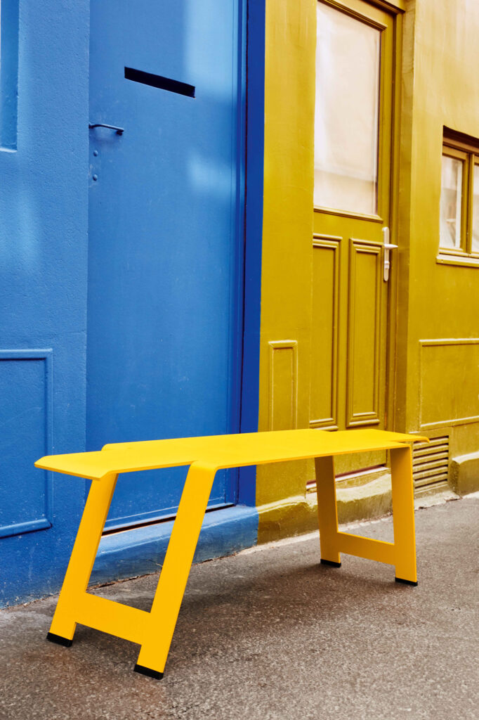 Wat een prachtig ontwerp van Harald Guggenbichler voor Fermob. Een supersterke bank uit één plaat dik staal gelaserd! Ook erg mooi voor bijvoorbeeld in een hal.