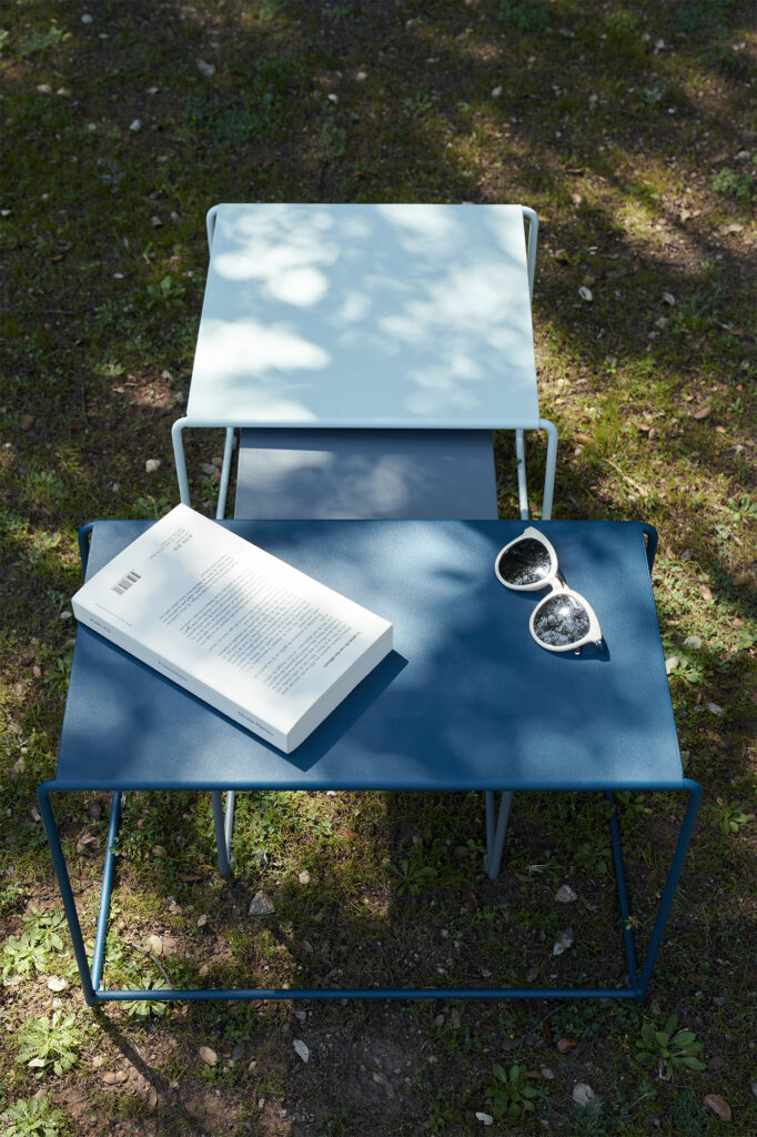 De Oulala bijzettafel set van Fermob bestaat steeds uit drie tafeltjes. Tafeltje 1 heeft een lengte van 55 centimeter, een breedte van 30 centimeter en een hoogte van 40 centimeter. De hoogte van de tafelpootjes bedraagt 38,5 centimeter, de afstand tussen de tafelpootjes bedraagt 52,5 centimeter. Tafeltje 2 heeft een breedte van 40 centimeter, een lengte van 40 centimeter en een hoogte van 37 centimeter. De afstand tussen de tafelpootjes bedraagt 37 centimeter, de hoogte van de tafelpootjes 35,5 centimeter. Tafeltje 3 heeft een lengte van 50,5 centimeter, een breedte van 30 centimeter en een hoogte van 34 centimeter. De afstand tussen de pootjes bedraagt 26,5 centimeter, de hoogte 32,5 centimeter. De tafeltjes zijn gemaakt van staal, afgewerkt met een weer- en uv-bestendige poedercoating. Oulala weegt 11 kilogram. Je vindt de set in 3 verschillende kleuren.