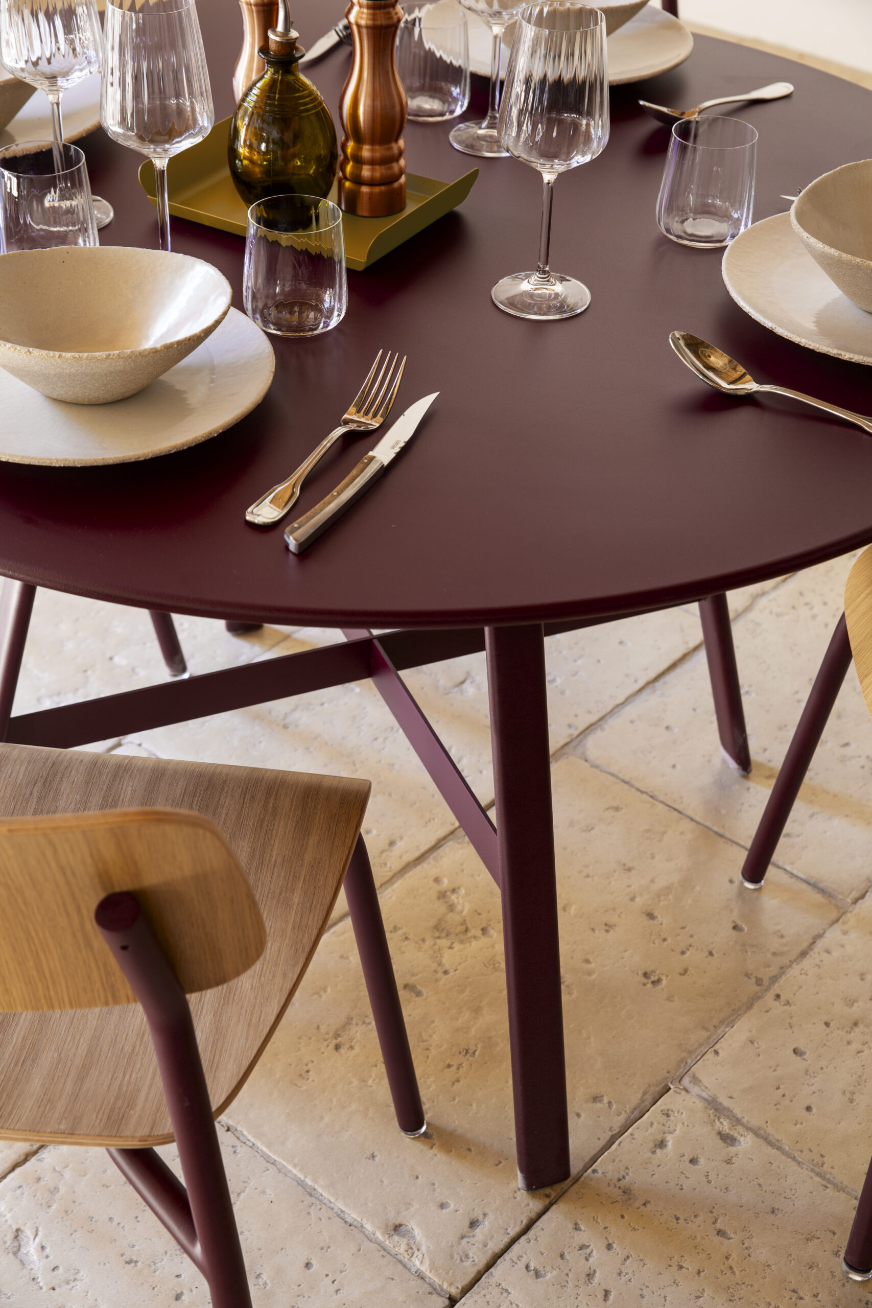 De Fermob SO’O tafel Ø117 cm is een elegante, ronde tuintafel met een verfijnde en moderne uitstraling. Dankzij het stalen blad en het luchtige onderstel combineert deze tafel stevigheid met een subtiel design – perfect voor lange, stijlvolle diners buiten.