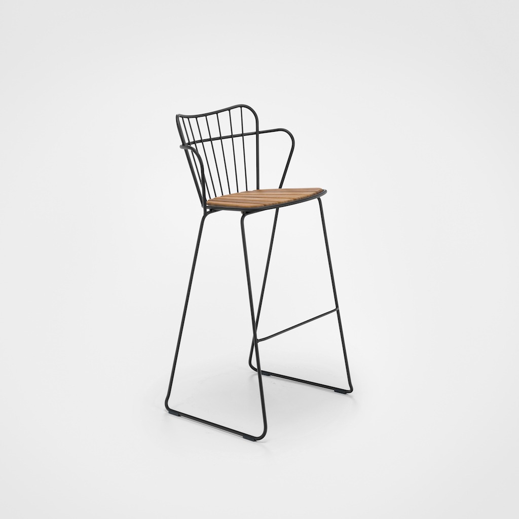 Met de Houe Paon heeft het Deense Merk Houe een geweldige nieuwe lijn in 2019 geïntroduceerd. De Deense ontwerper Henrik Pedersen heeft voor deze serie 5 varianten ontworpen, armstoel, loungestoel, schommelstoel, eem bank en een barkruk. Allen zijn gemaakt van staal en hebben een bamboe zitting. Alle 5 Paon ontwerpen zijn verkrijgbaar in 3kleuren. Deze barkruk heeft een zithoogte van 78 cm. Optioneel is er ook voor alle ontwerpen een kussen verkrijgbaar in de kleur Heritage.