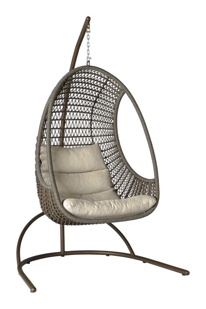 Er zijn veel hangstoelen die een moment van rust beloven, maar de Avellino hangfauteuil onderscheidt zich door een uniek ontwerp dat niet alleen comfort biedt, maar ook visueel verrast. Het open ontwerp aan de zijkanten van de stoel zorgt voor een beter zicht en een luchtige, open uitstraling, wat het gevoel van cocooning versterkt zonder dat je het gevoel hebt afgesloten te zijn van je omgeving. Deze hangstoel is ergonomisch ontworpen voor optimaal zitcomfort, met een perfecte balans tussen steun en ontspanning. Het bronskleurige frame, gecombineerd met het geweven rope in een warme Wengé tint, vormt een elegant contrast met het gesegmenteerd gevulde, allweather kussen in de kleur Stone, dat vloeiend doorloopt van de zit- naar de rugleuning. Het is de perfecte mix van design en functionaliteit, met materialen die zorgvuldig zijn geselecteerd en tot in de finesses zijn afgewerkt. De Avellino is verkrijgbaar met of zonder standaard, waardoor je de vrijheid hebt om de stoel aan bijvoorbeeld het plafond van je veranda of aan een boom te bevestigen. Hoe je de Avellino ook plaatst, het zal altijd zorgen voor dat onmiskenbare vakantiegevoel, met de luxe van een exclusief ontwerp en ultiem comfort.