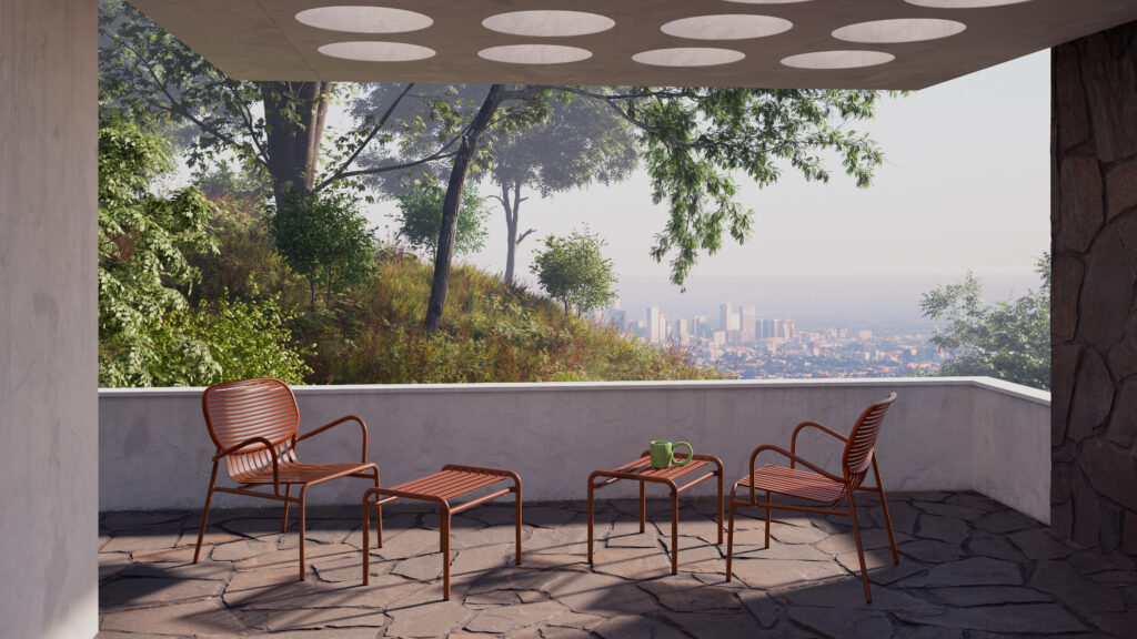 Made of aluminium, the stools are as robust as they are lightweight.