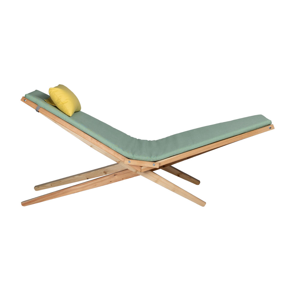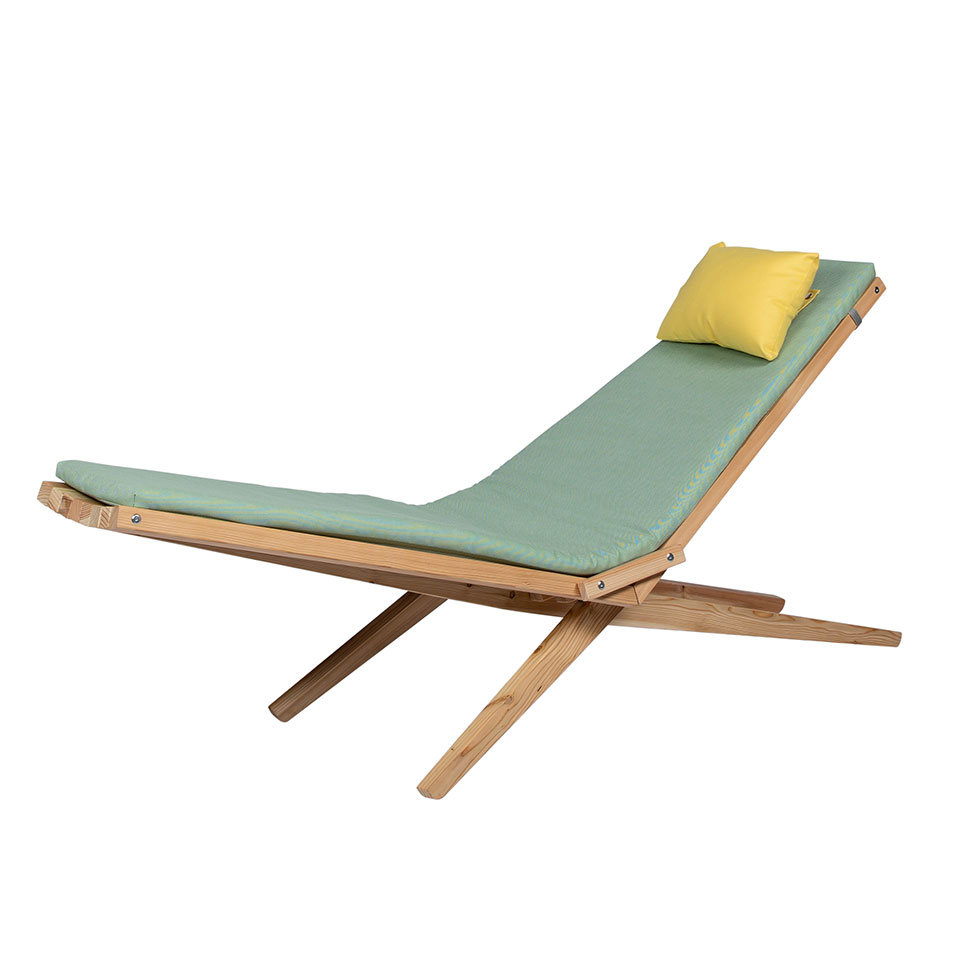 De Fieldlounger is gemaakt van duurzaam larikshout, dat met een beetje onderhoud jaren meegaat en de lounger een elegante natuurlijke uitstraling geeft. Het slimme ontwerp maakt hem niet alleen comfortabel om in te relaxen, maar ook gemakkelijk op te bergen. Vouw de stoel eenvoudigweg in tweeën en berg hem rechtop op wanneer hij niet wordt gebruikt. De Fieldlounger wordt geleverd met een kussenset in lichtgroen.