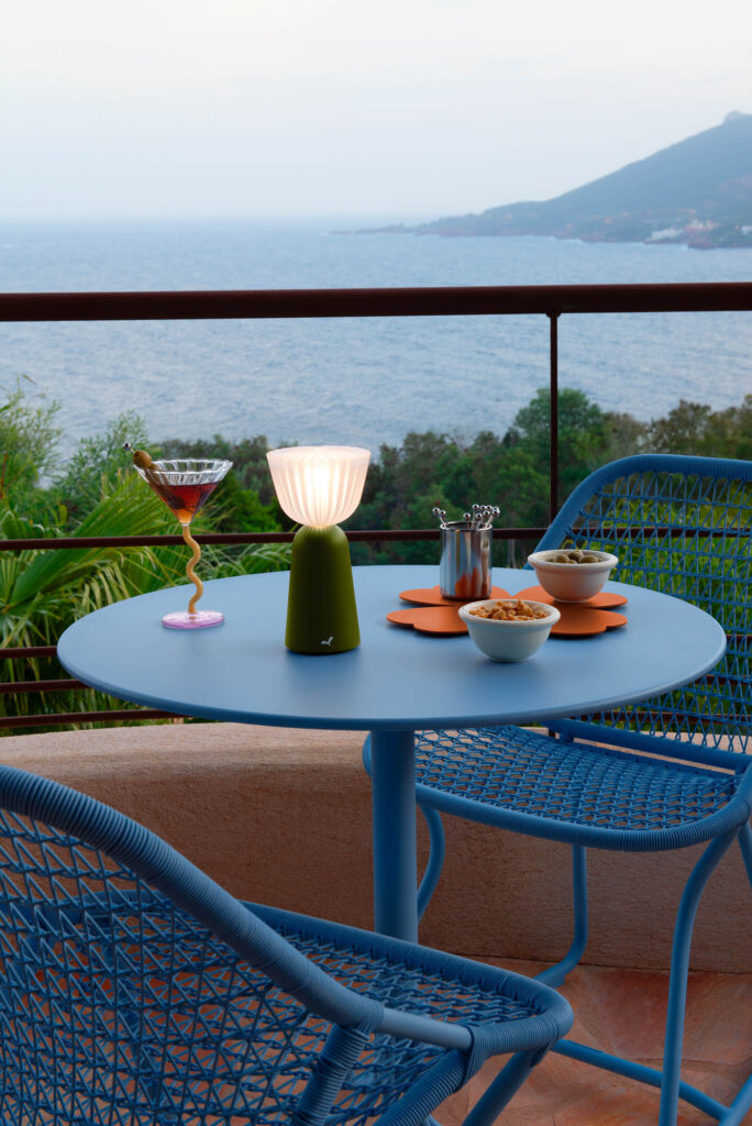 Dankzij het luchtige ontwerp past deze stoel perfect in een moderne tuin, op een terras of balkon. Combineer met de low table of bench uit dezelfde collectie voor een harmonieus geheel.